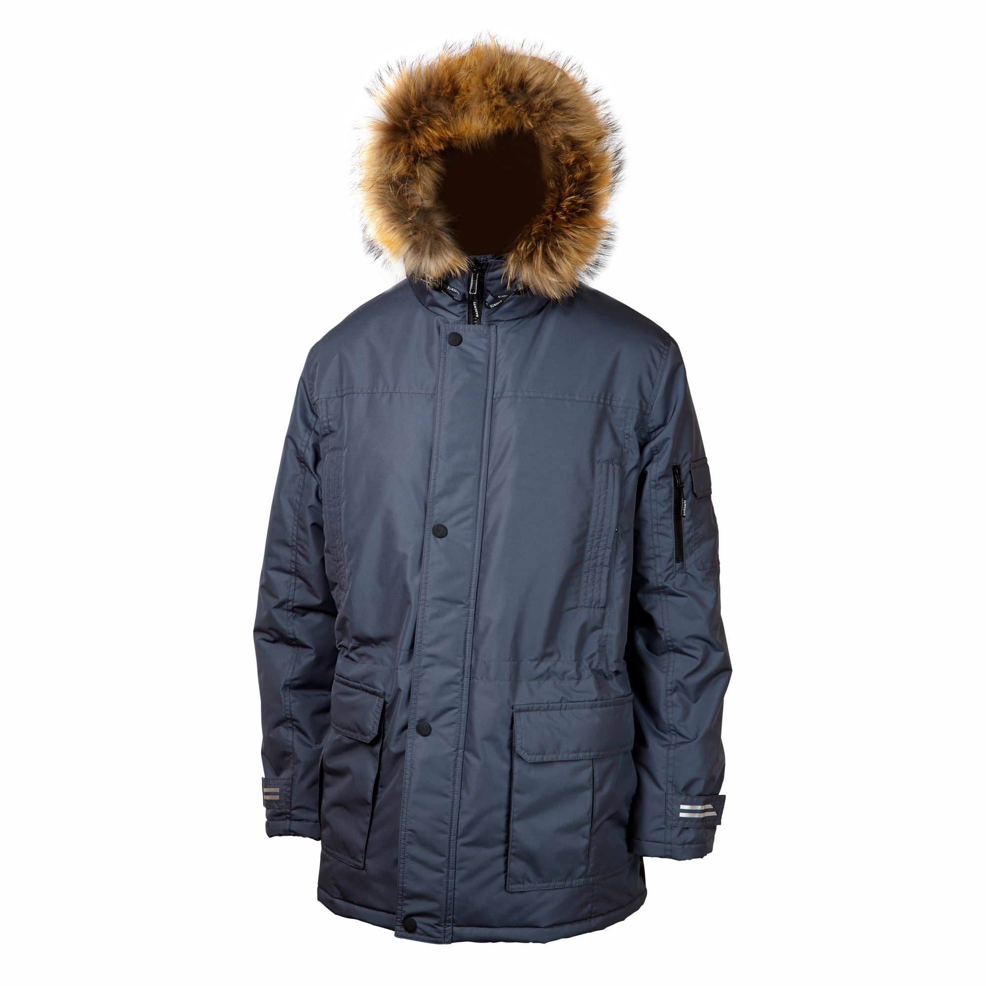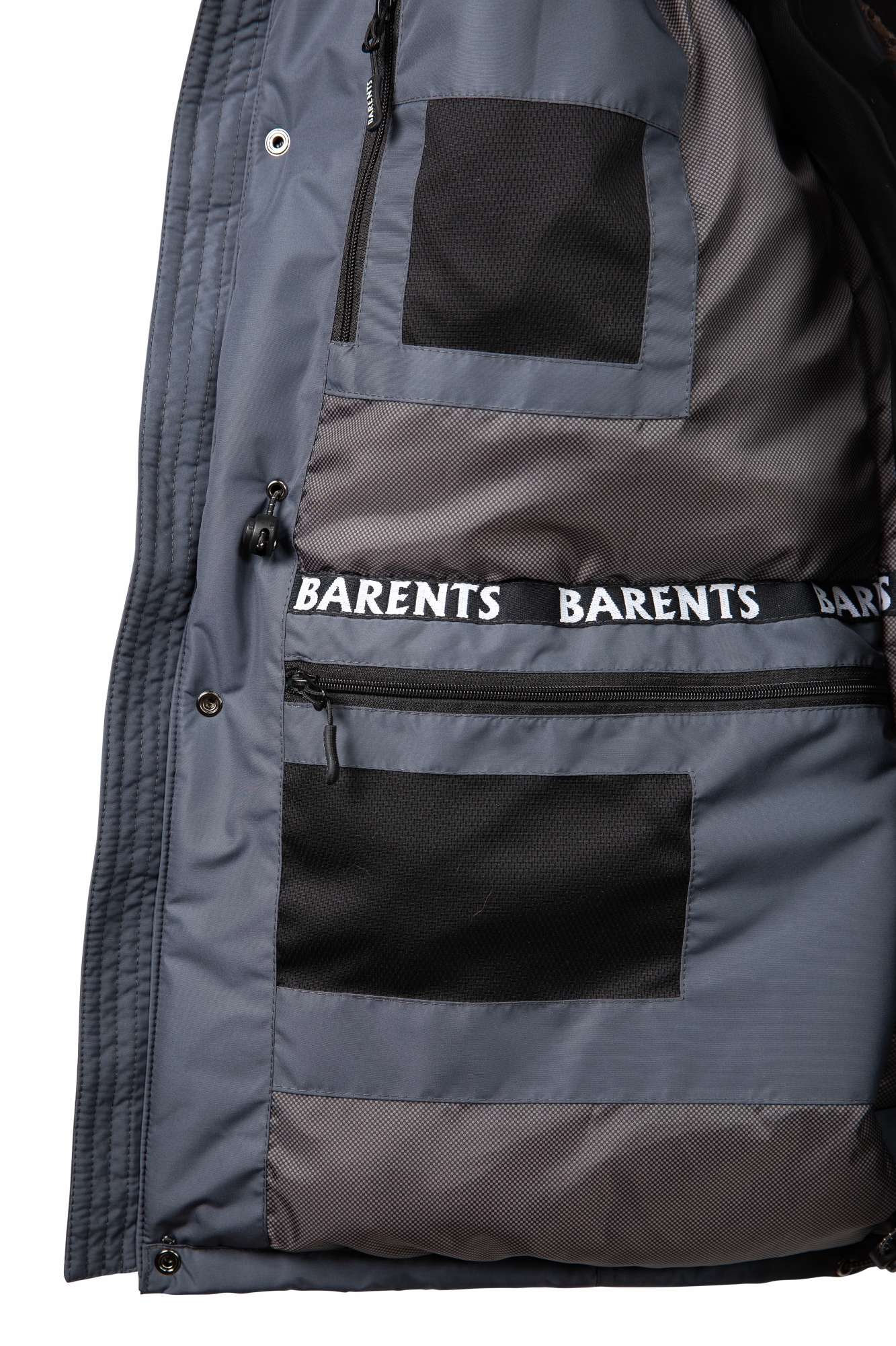 - Верхние нагрудные карманы – прорезные с молниями, нижние – накладные объёмные с клапанами на магнитах